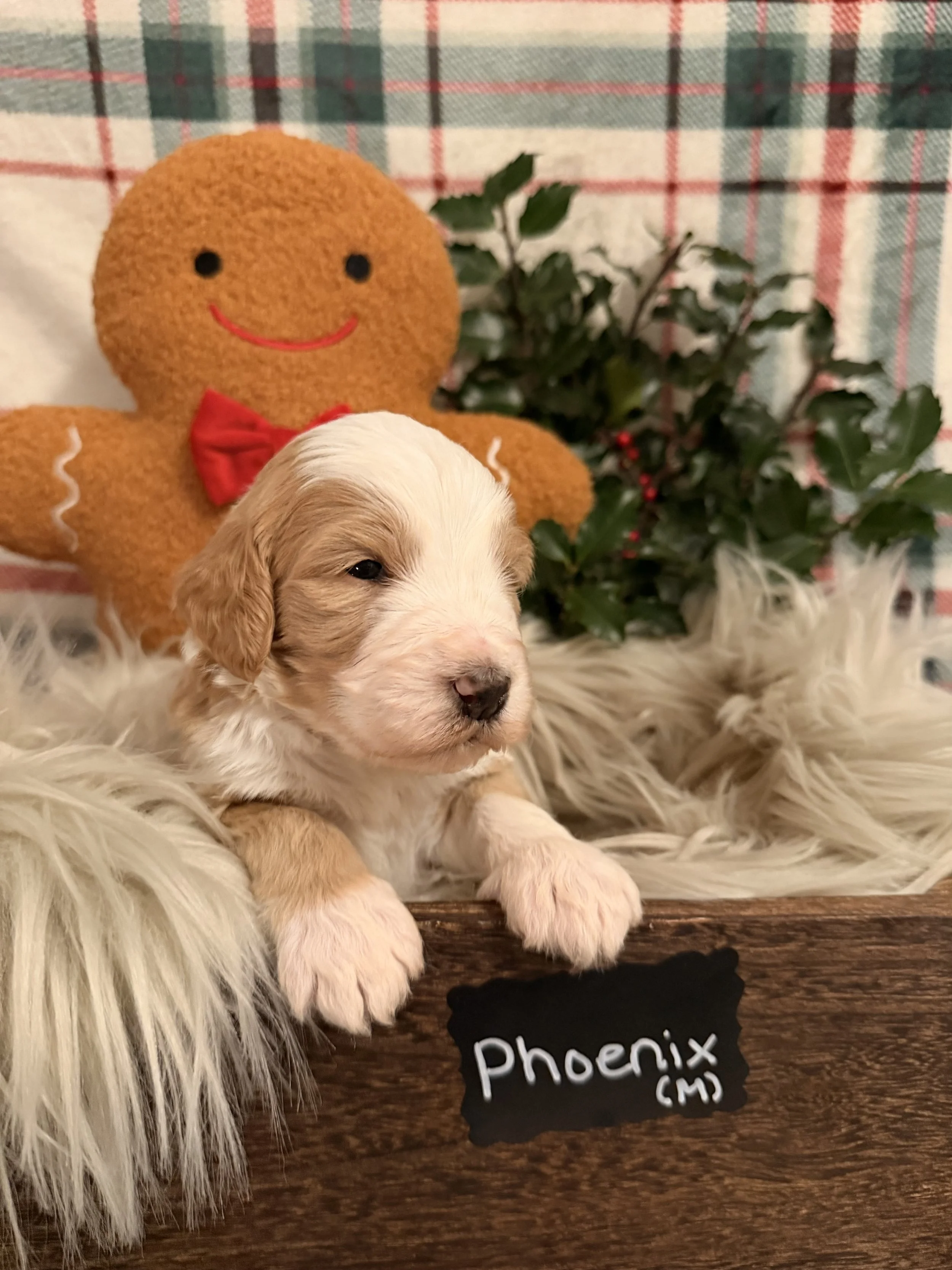 AVAILABLE Maggie’s Australian Saint Bernedoodles PHOENIX(M) estimated size at maturity 55-65lbs go home date 1/17/26. Free delivery if within 4 hours of Keene NH