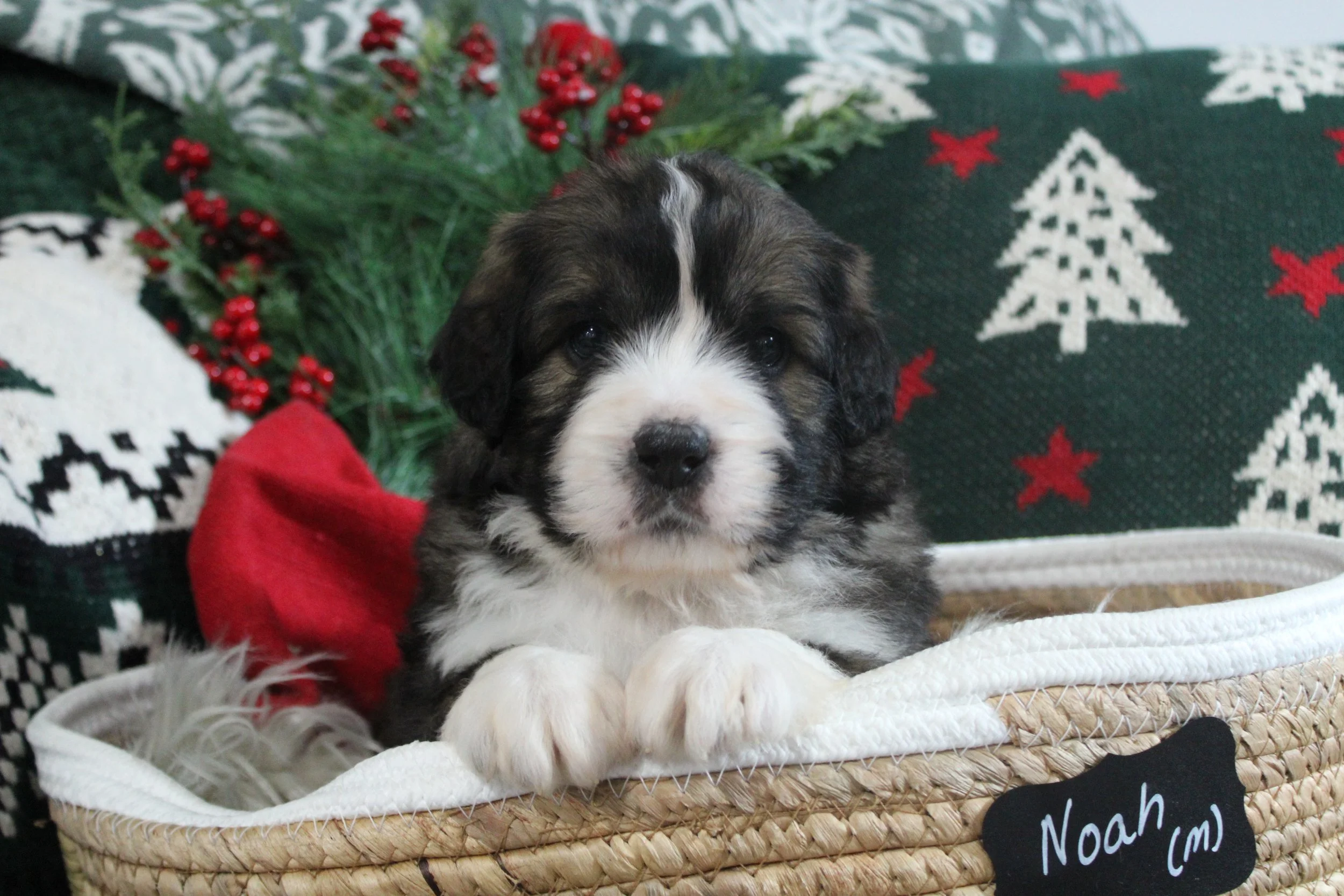 AVAILABLE Pippi’s Australian Saint Bernedoodles NOAH (M) estimated size at maturity 55-65lbs go home date 12/18/25. Free delivery if within 4 hours of Keene NH.