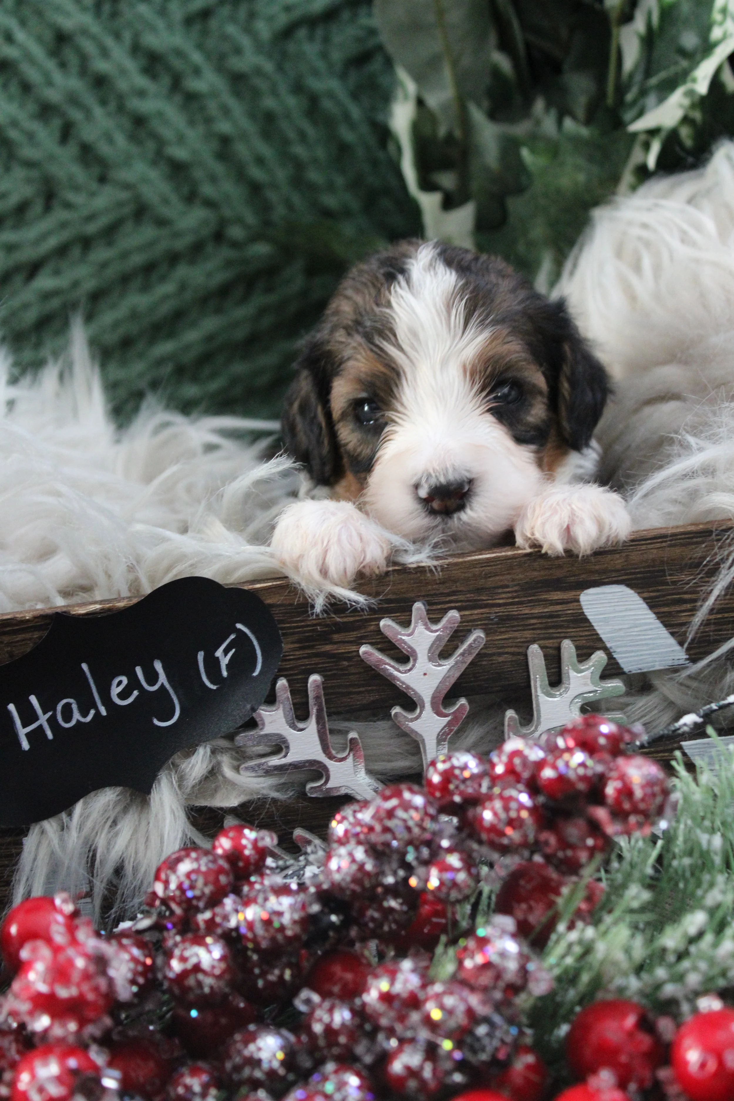 AVAILABLE Joy’s Australian Bernedoodles HALEY (F) estimated size at maturity 40-50lbs go home date 1/14/26. Free delivery if within 4 hours of Keene NH