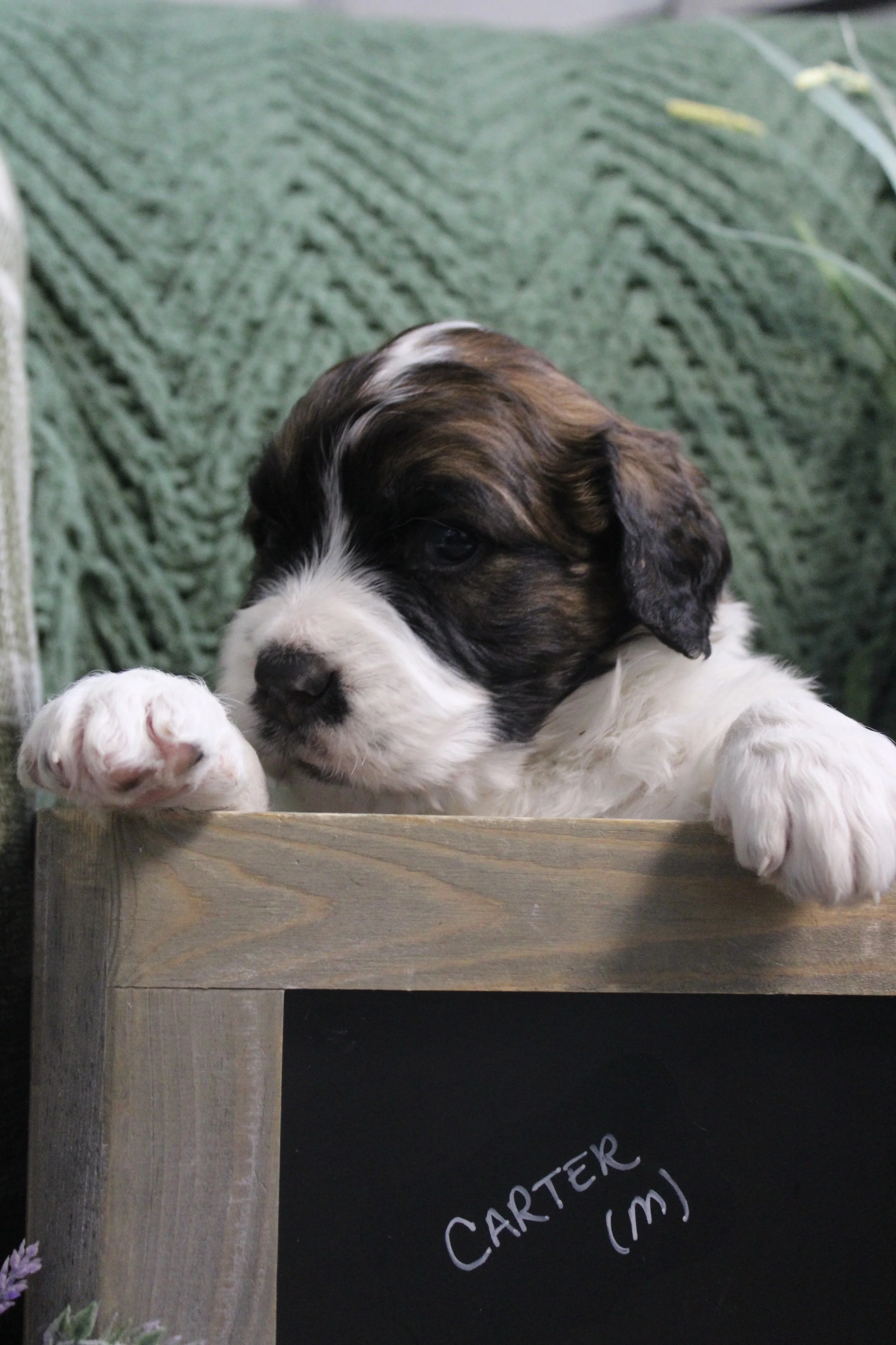 AVAILABLE Pebbble’s Saint Berdoodles CARTER (M) estimated size at maturity 70-80lbs go home date 2/8/26. Free delivery if within 4 hours of Keene NH