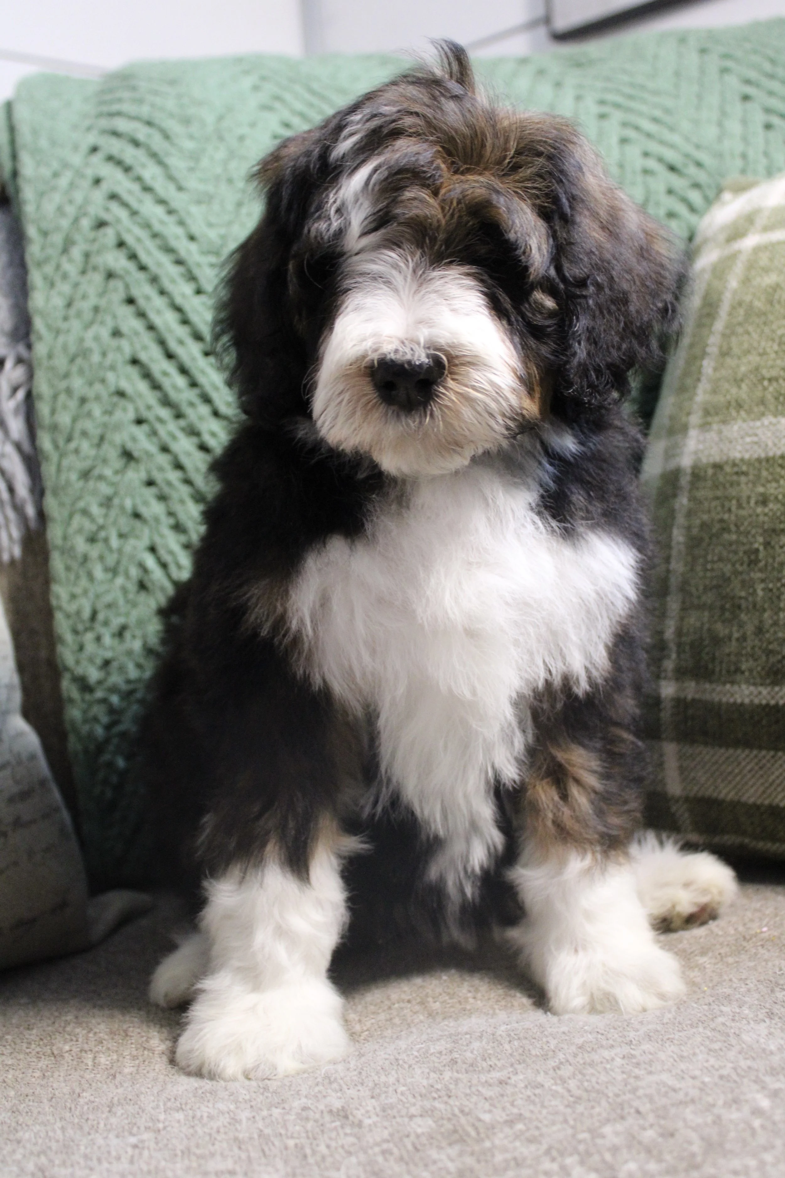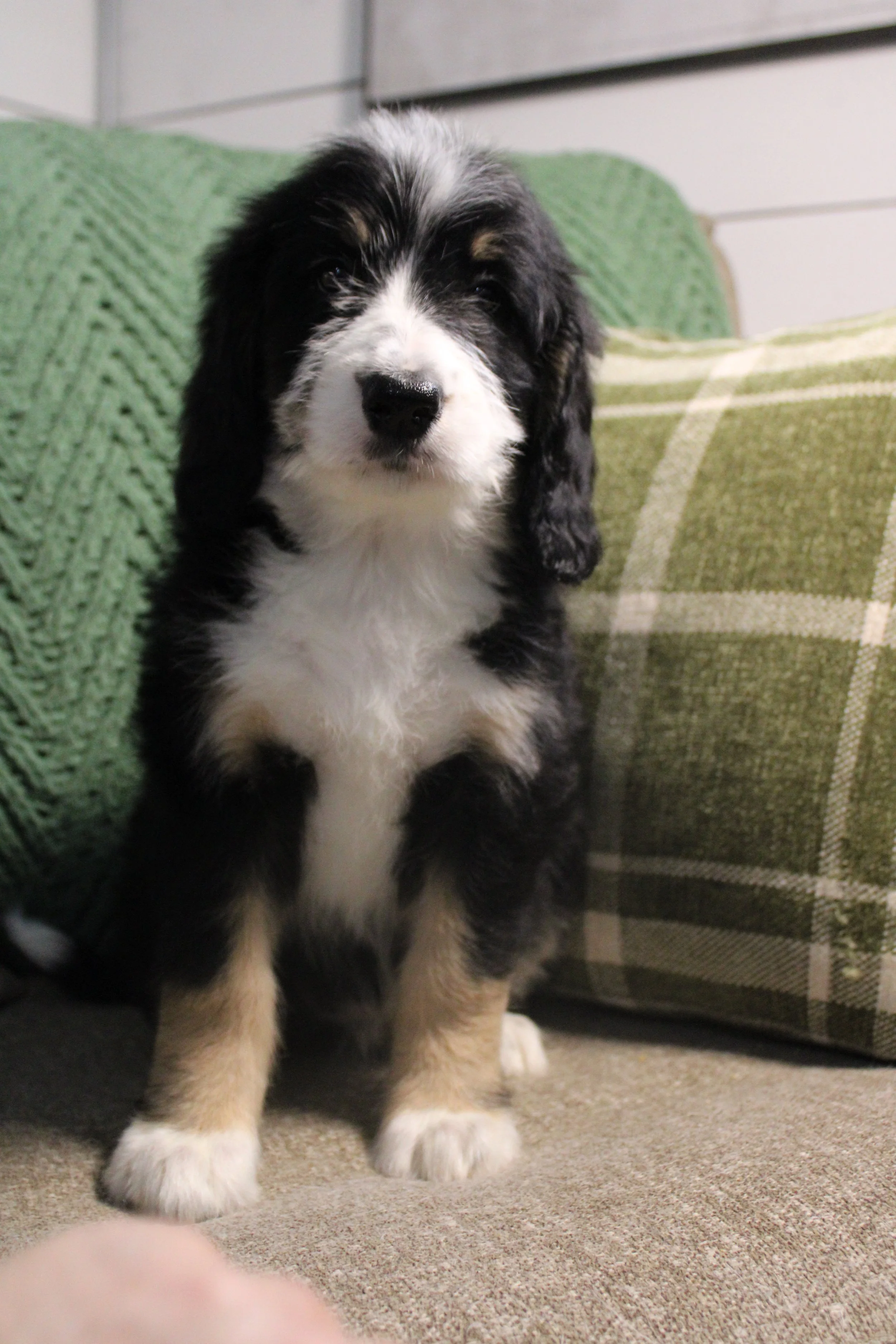 AVAILABLE Carly’s Australian Bernedoodles MAX (M) estimated size at maturity 30-40lbs go home date 2/13/26. Free delivery if within 4 hours of Keene NH