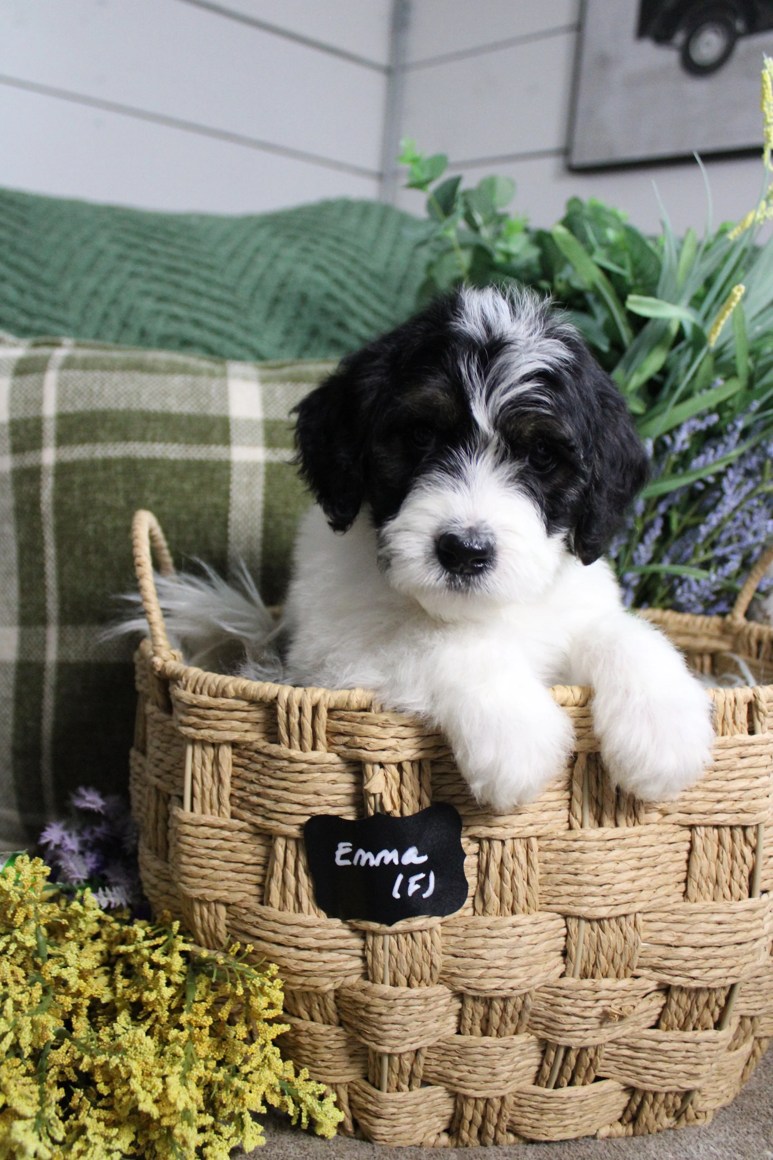 AVAILABLE Maisy’s Australian Bernedoodle EMMA (F) estimated size at maturity 45-55lbs go home date 5/3/26. Free delivery if within 4 hours of Keene NH