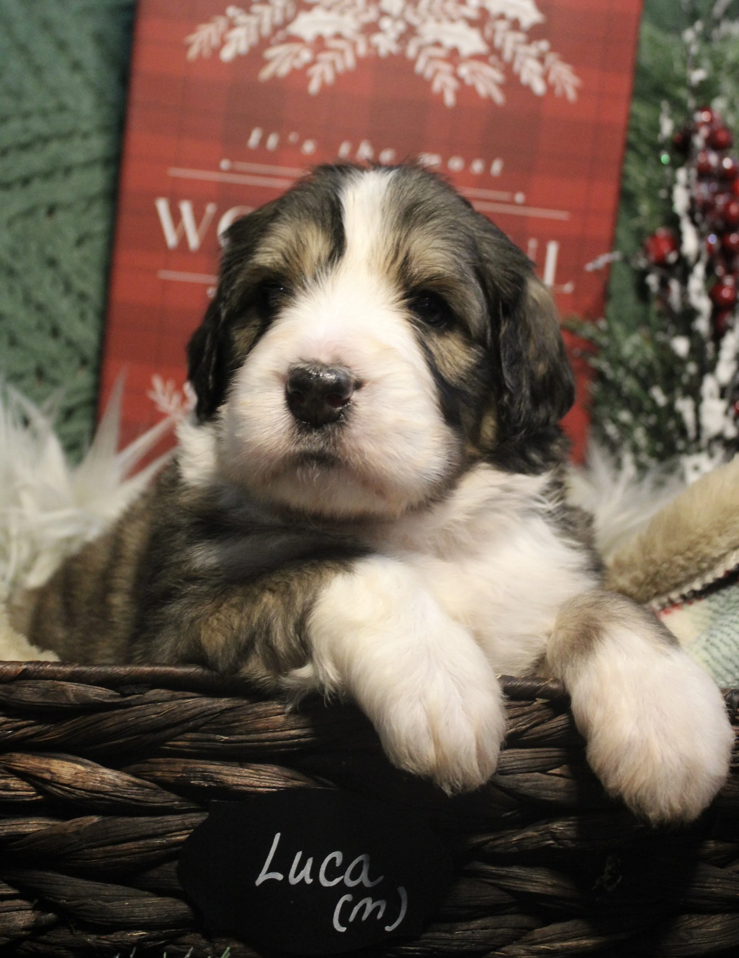 AVAILABLE Pippi’s Australian Saint Bernedoodles LUCA (M) estimated size at maturity 55-65lbs go home date 12/18/25. Free delivery if within 4 hours of Keene NH.