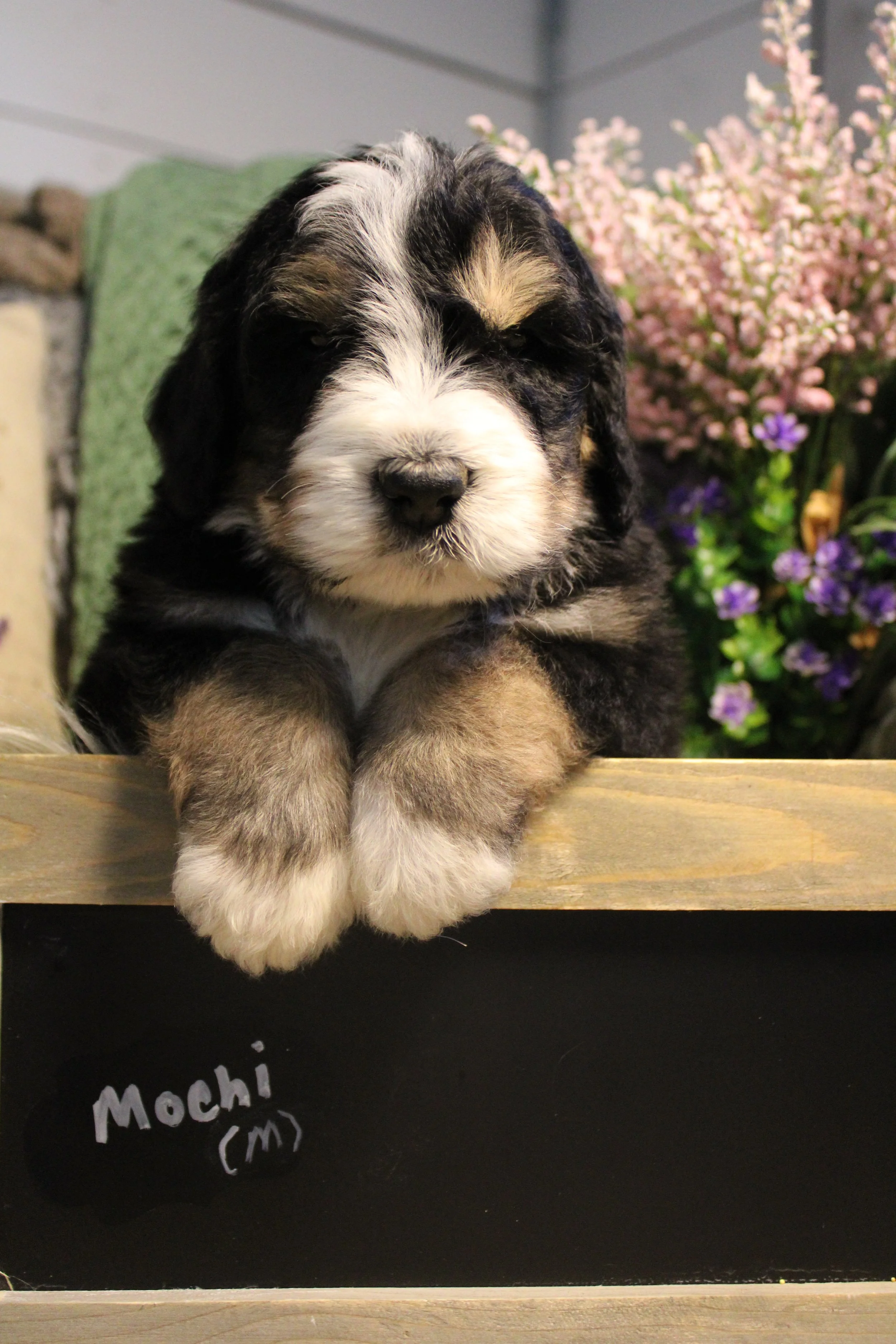 AVAILABLE Olive’s Australian Saint Bernedoodle MOCHI (M) estimated size at maturity 55-65lbs go home date 2/8/26. Free delivery if within 4 hours of Keene NH