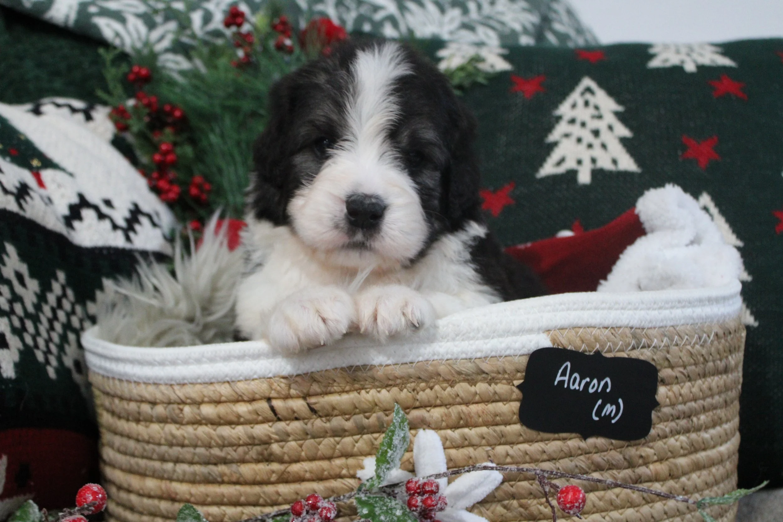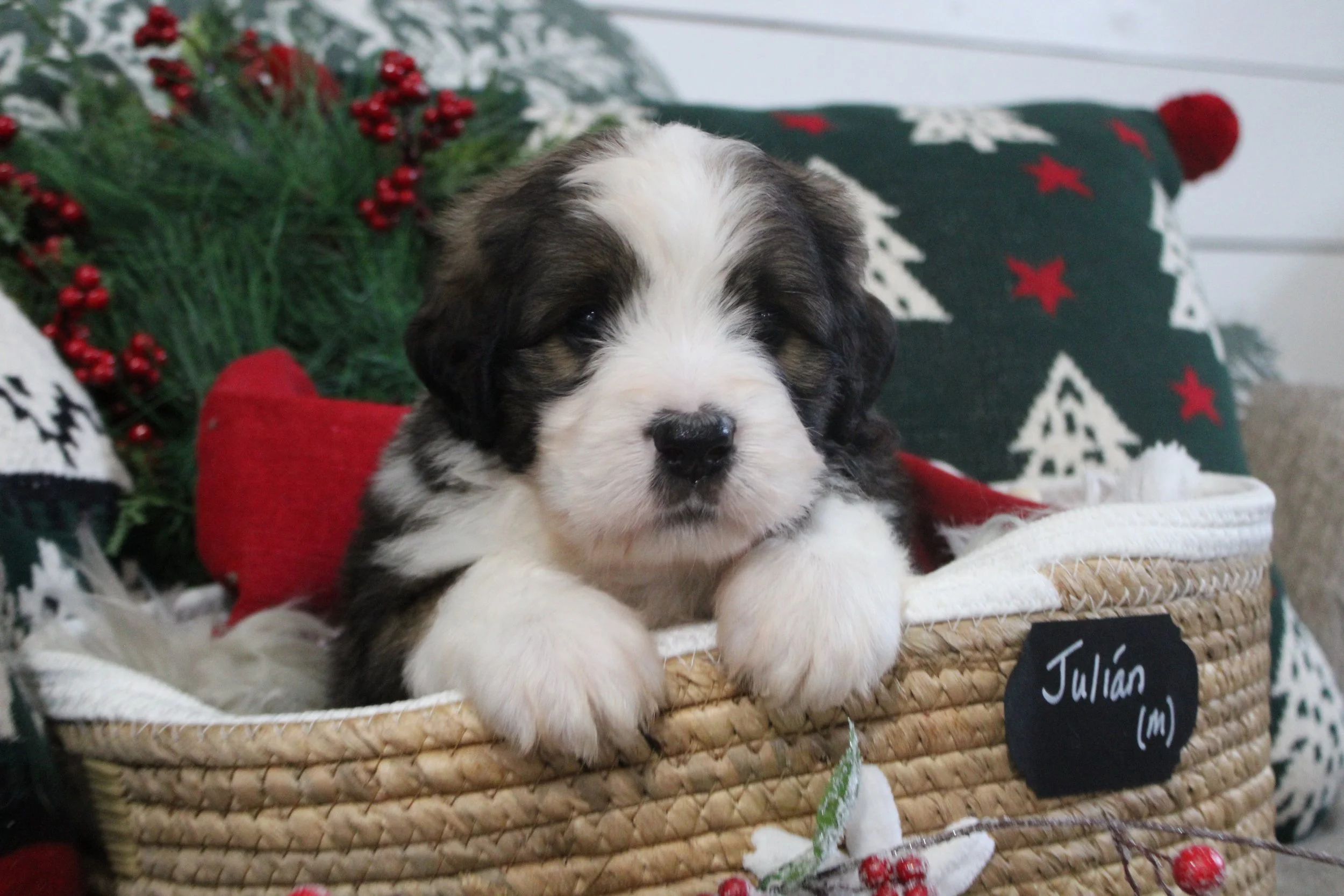 SOLD Pippi’s Australian Saint Bernedoodles AARON (M) estimated size at maturity 55-65lbs go home date 12/18/25. Free delivery if within 4 hours of Keene NH.