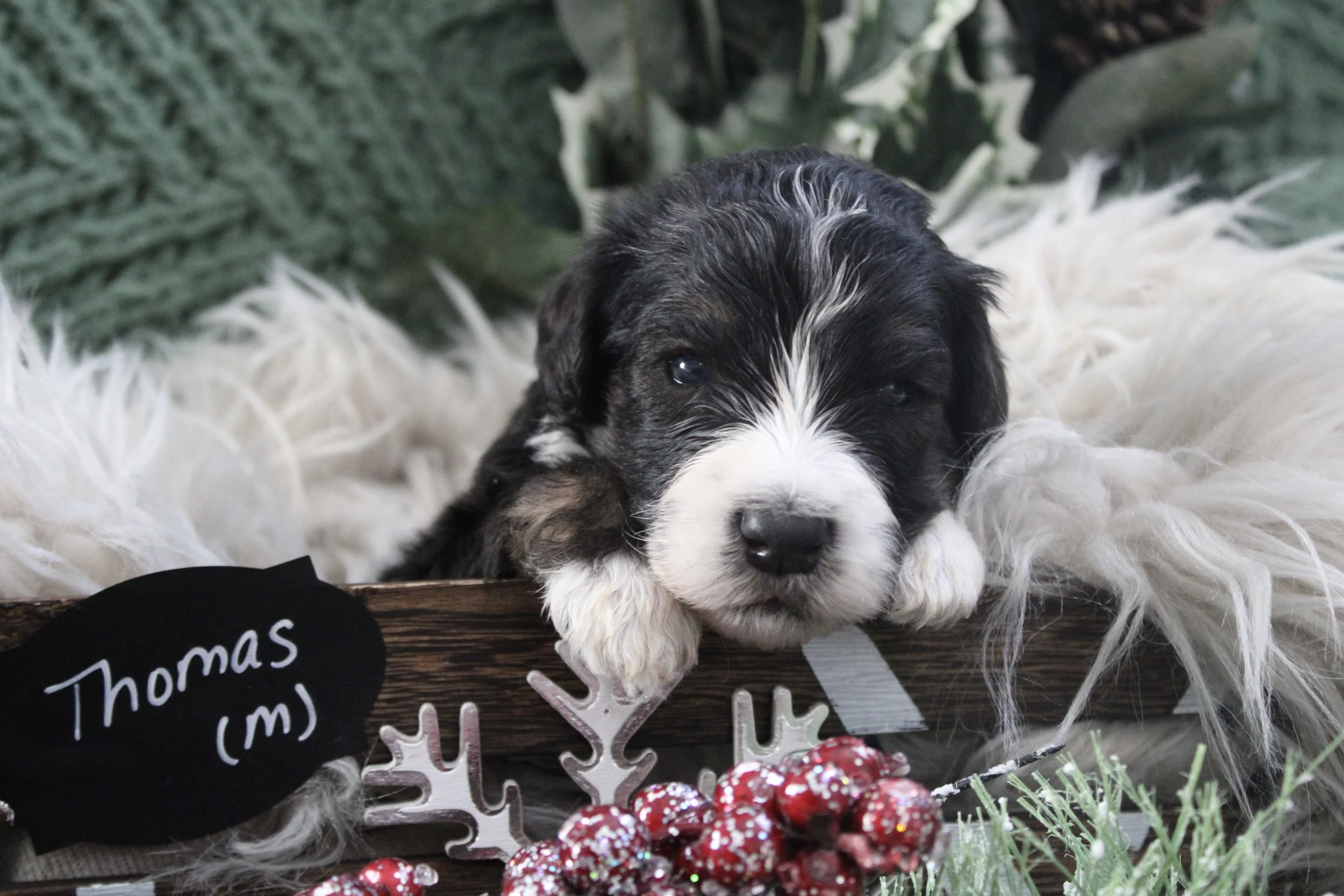 AVAILABLE Joy’s Australian Bernedoodles THOMAS (M) estimated size at maturity 40-50lbs go home date 1/14/26. Free delivery if within 4 hours of Keene NH