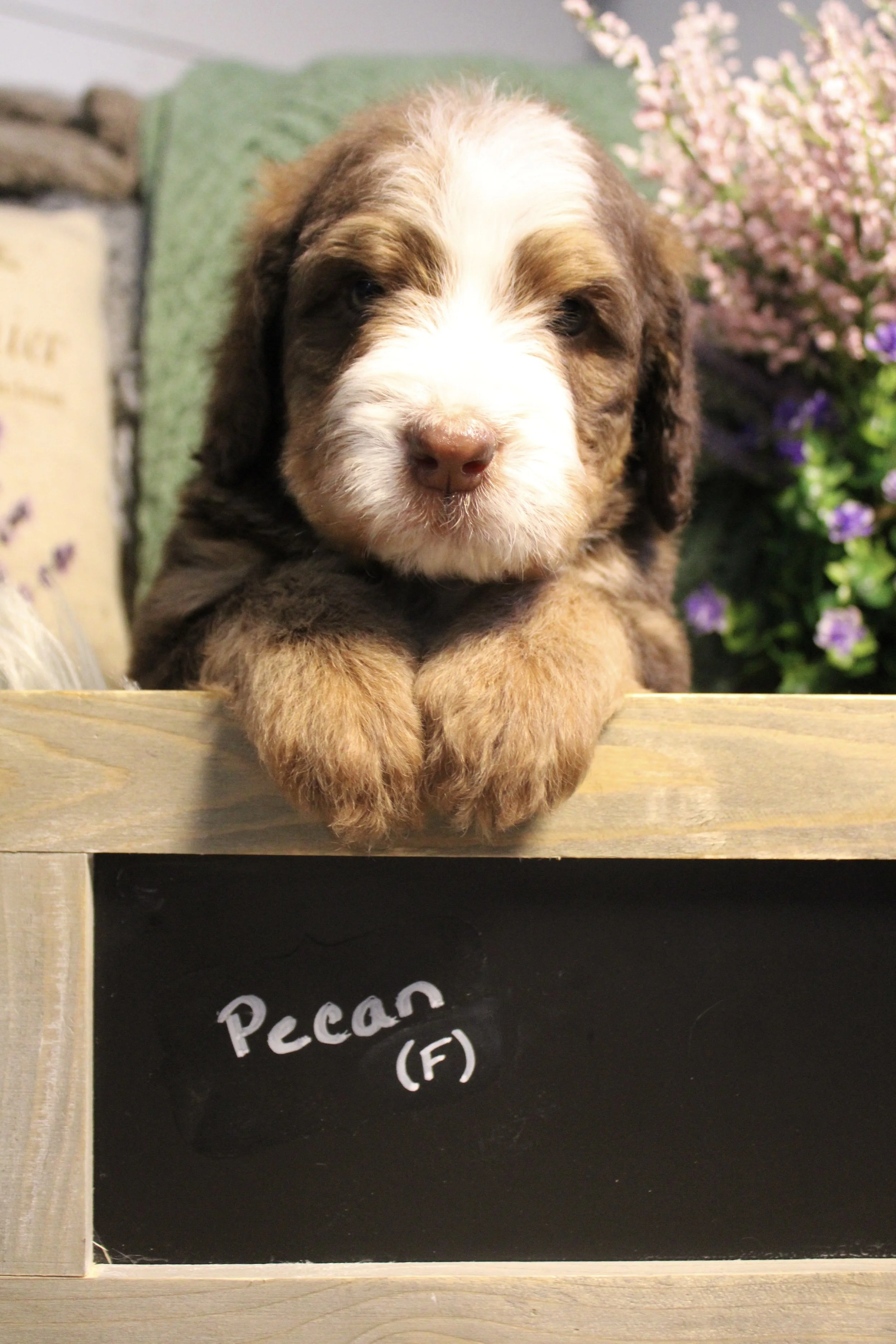 AVAILABLE Olive’s Australian Saint Bernedoodle PECAN (F) estimated size at maturity 55-65lbs go home date 2/8/26. Free delivery if within 4 hours of Keene NH