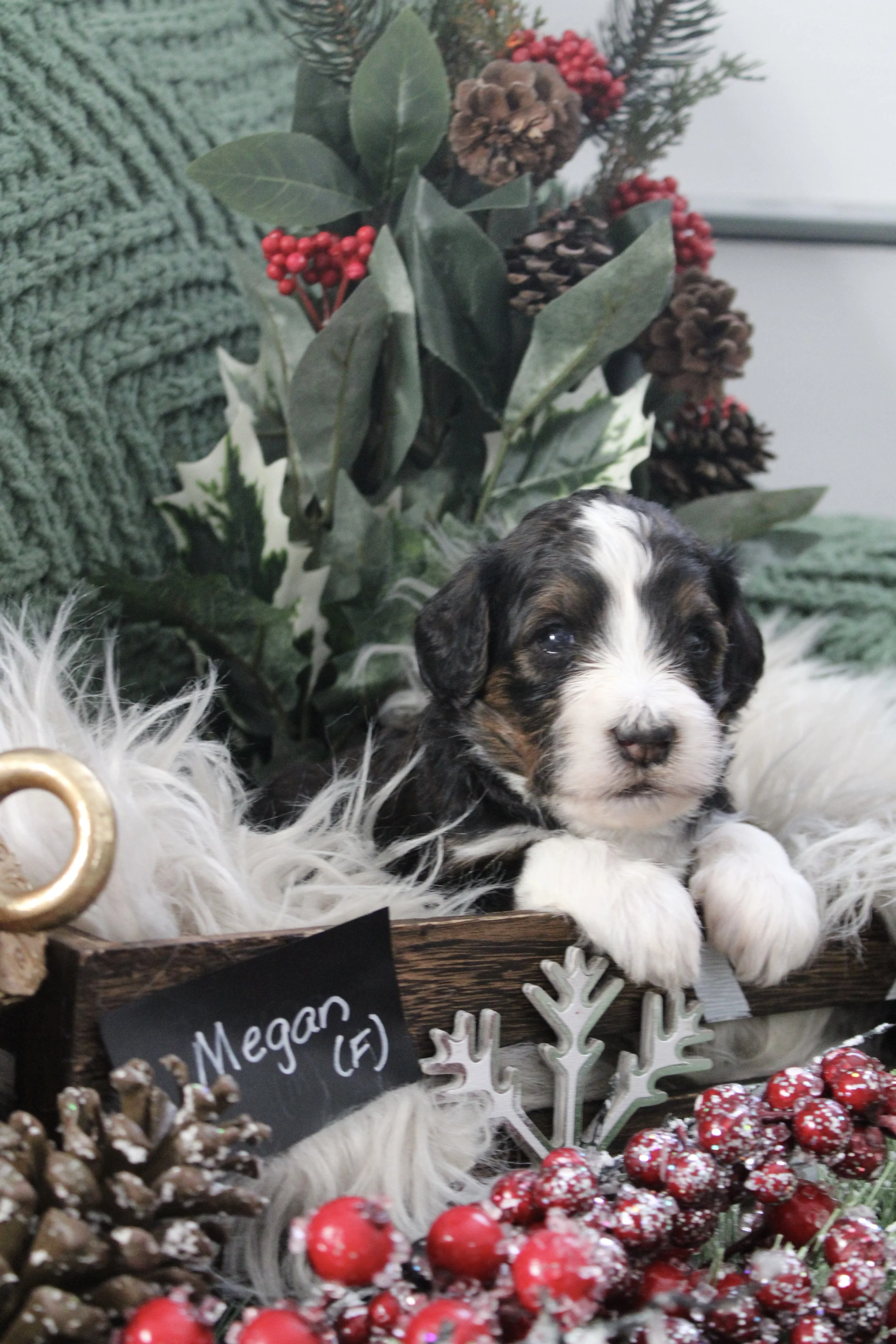 AVAILABLE Joy’s Australian Bernedoodles MEGAN (F) estimated size at maturity 40-50lbs go home date 1/14/26. Free delivery if within 4 hours of Keene NH