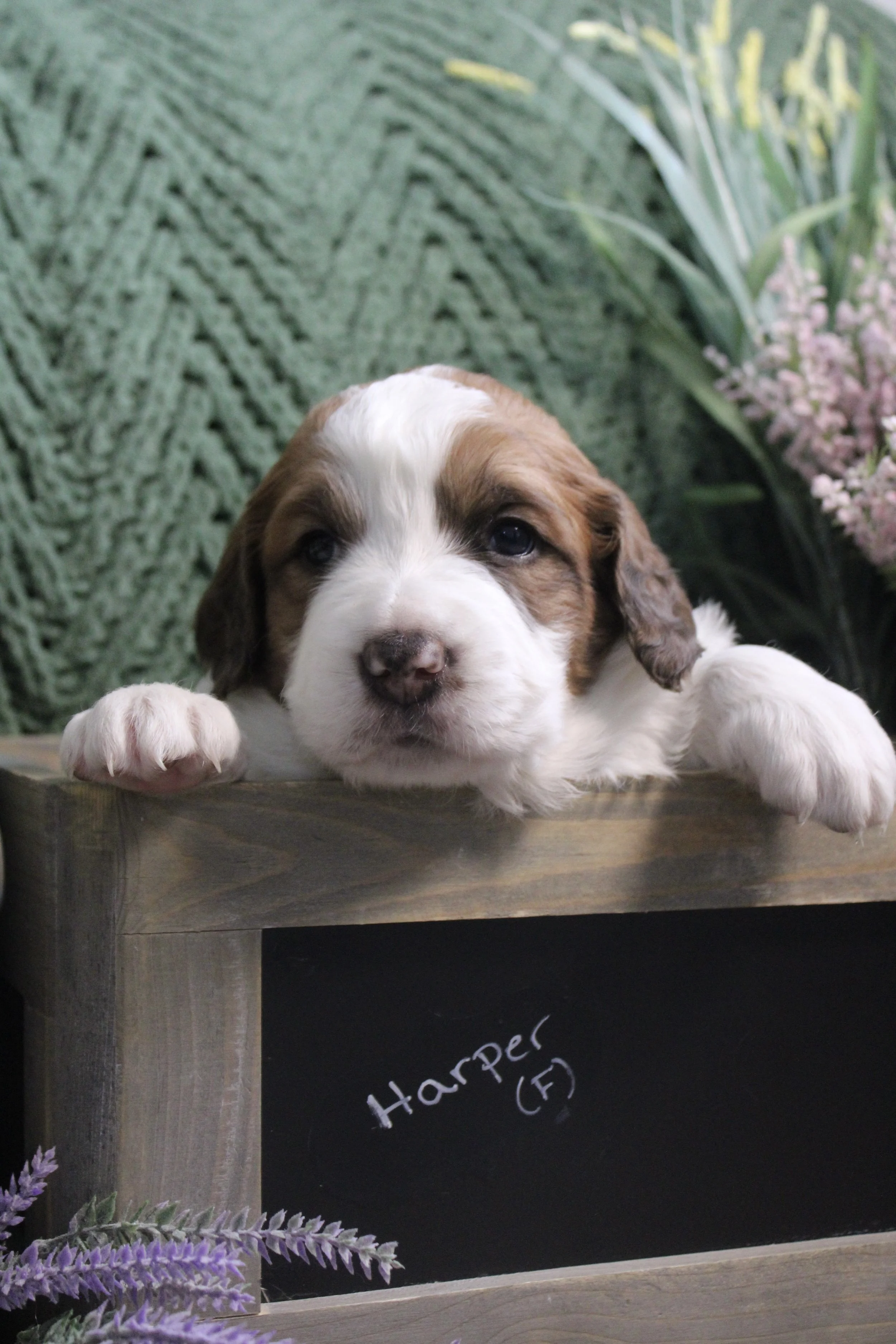 AVAILABLE Pebbble’s Saint Berdoodles HARPER (F) estimated size at maturity 70-80lbs go home date 2/8/26. Free delivery if within 4 hours of Keene NH