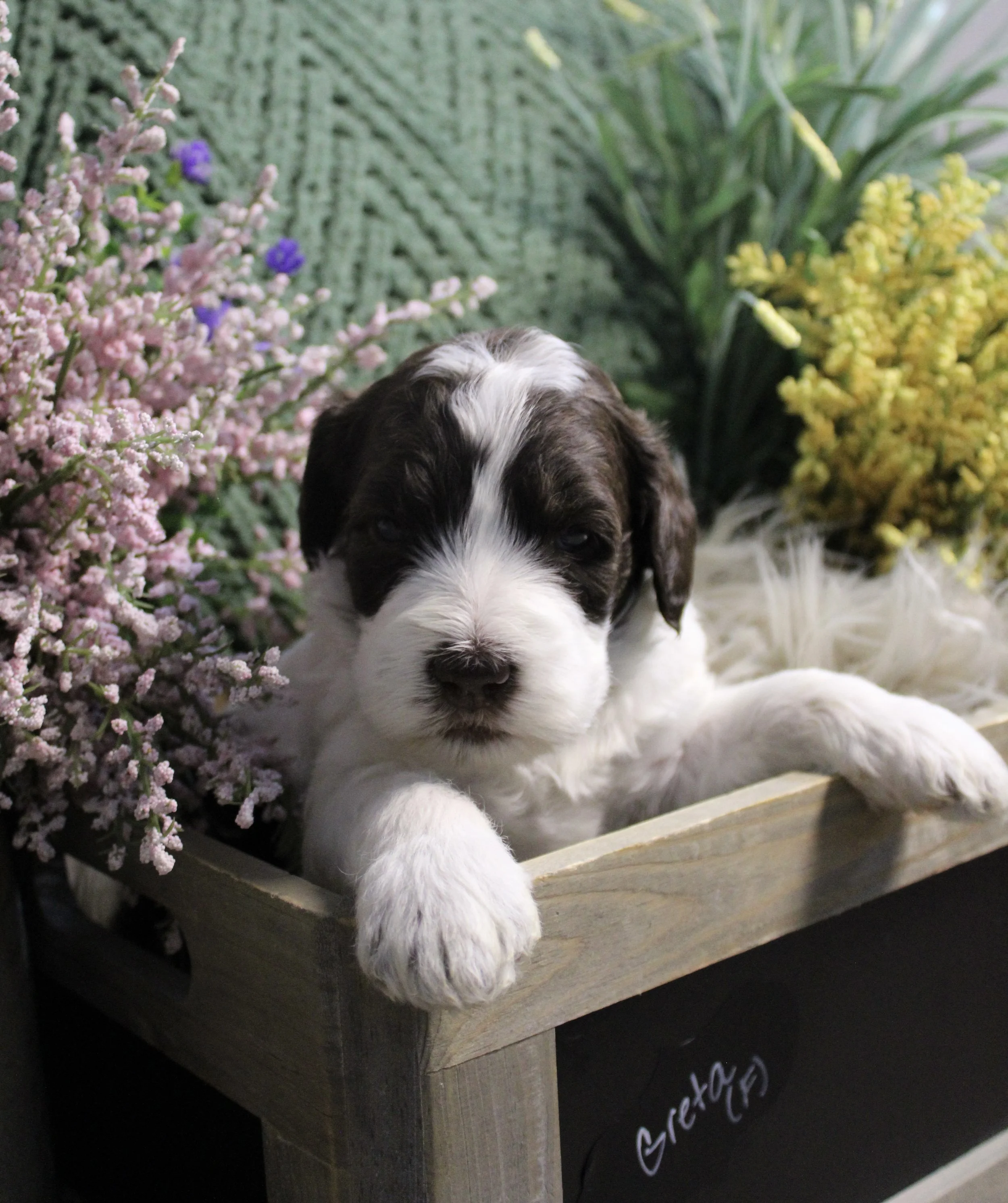 AVAILABLE River’s Australian Saint Bernedoodle GRETA (F) estimated size at maturity 55-65lbs go home date 2/19/26. Free delivery if within 4 hours of Keene NH