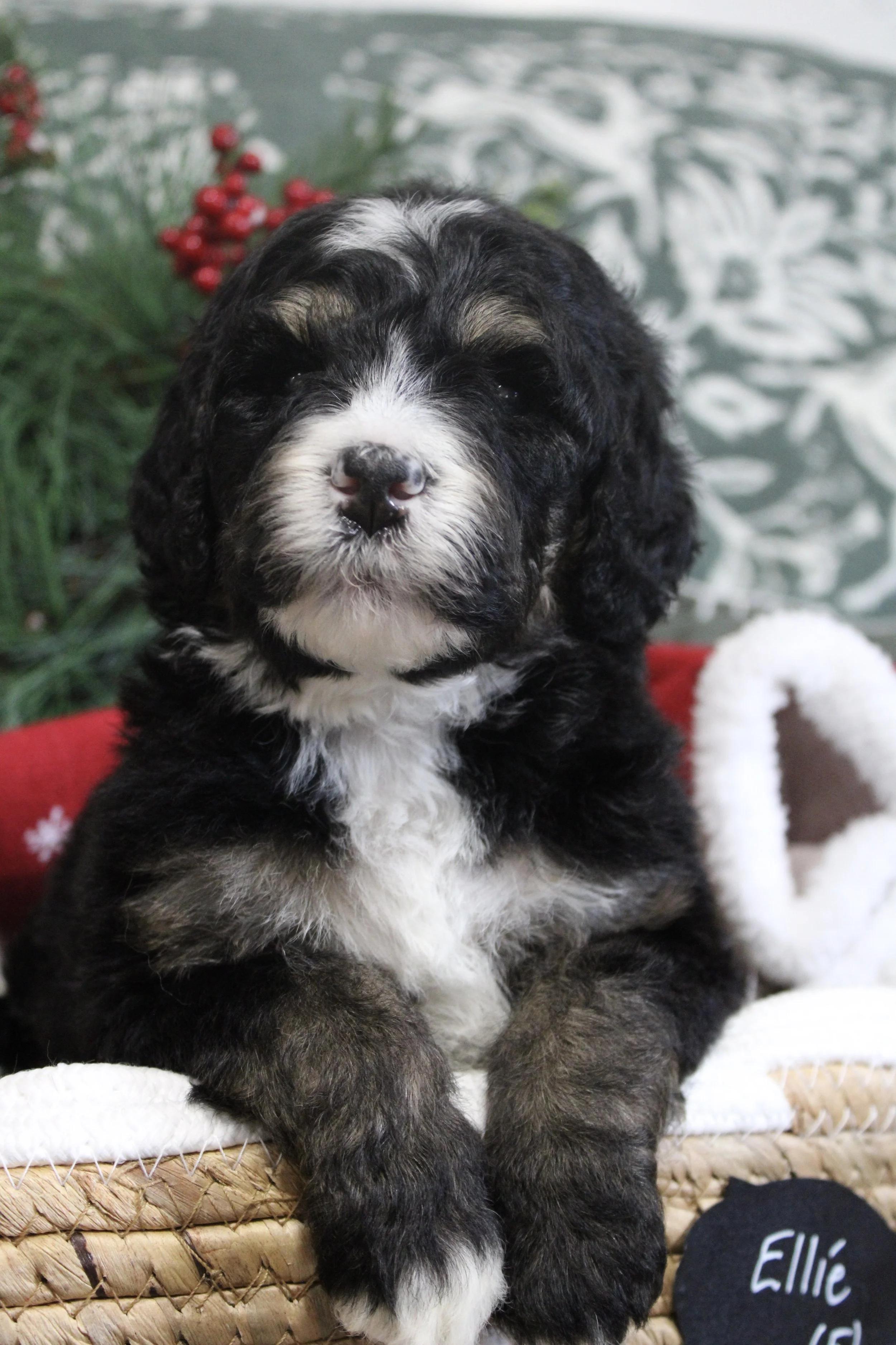 PENDING Sage’s Bernedoodles ABBY (F) estimated size at maturity 45-55lbs go home date 12/23/25. Free delivery if within 4 hours of Keene NH.