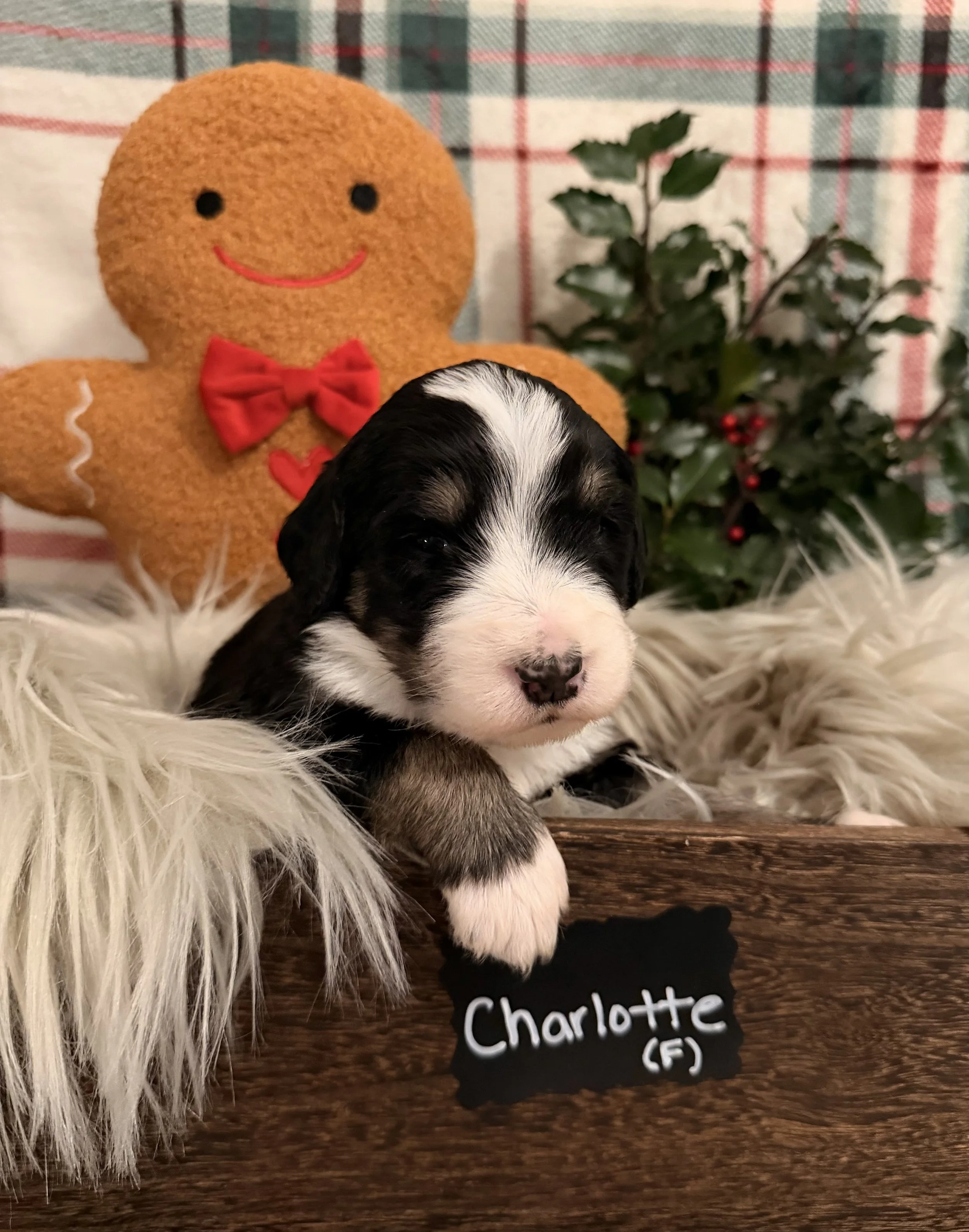 AVAILABLE Sage’s Bernedoodles BELLA (F) estimated size at maturity 45-55lbs 8 weeks old. Free delivery if within 4 hours of Keene NH. HOLIDAY SPECIAL $2950