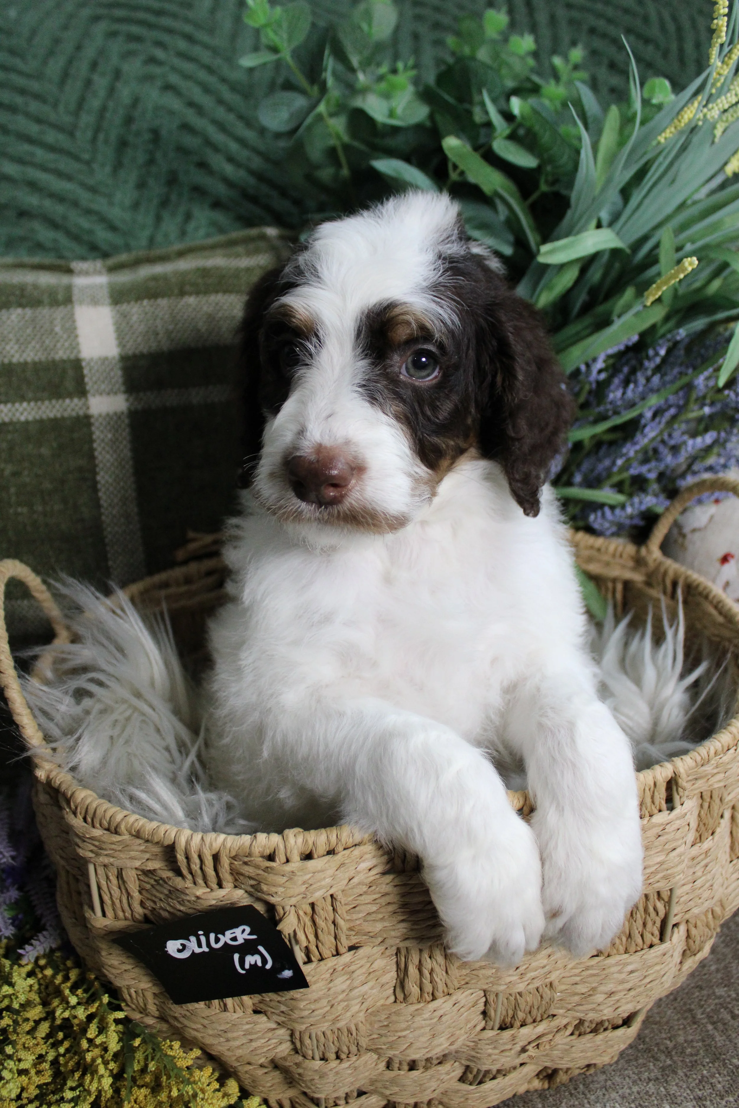 AVAILABLE Maisy’s Australian Bernedoodle OLIVER (M) estimated size at maturity 45-55lbs go home date 5/3/26. Free delivery if within 4 hours of Keene NH