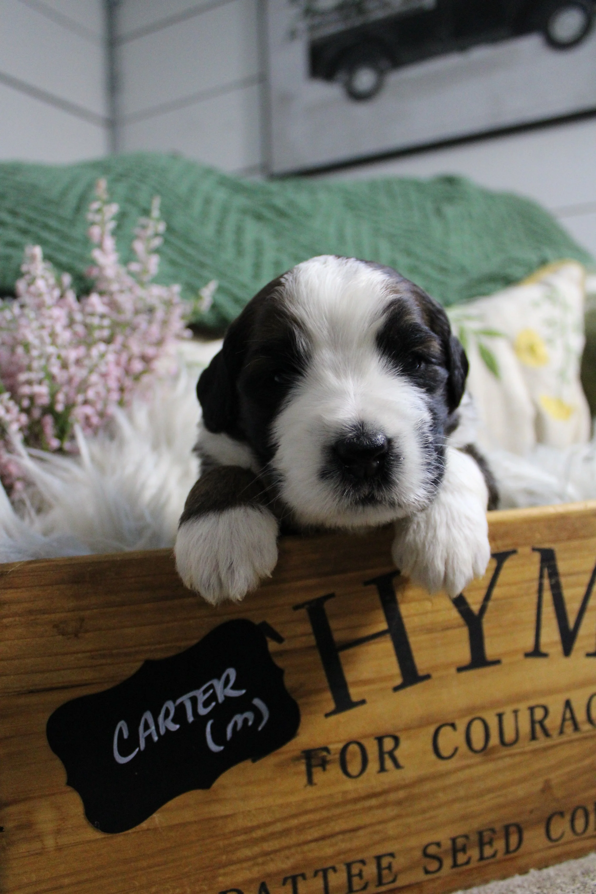 SOLD Paisley’s Australian Saint Bernedoodles ADRIAN (M) estimated size at maturity 75-85lbs go home date 5/23/26. Free delivery if within 4 hours of Keene NH
