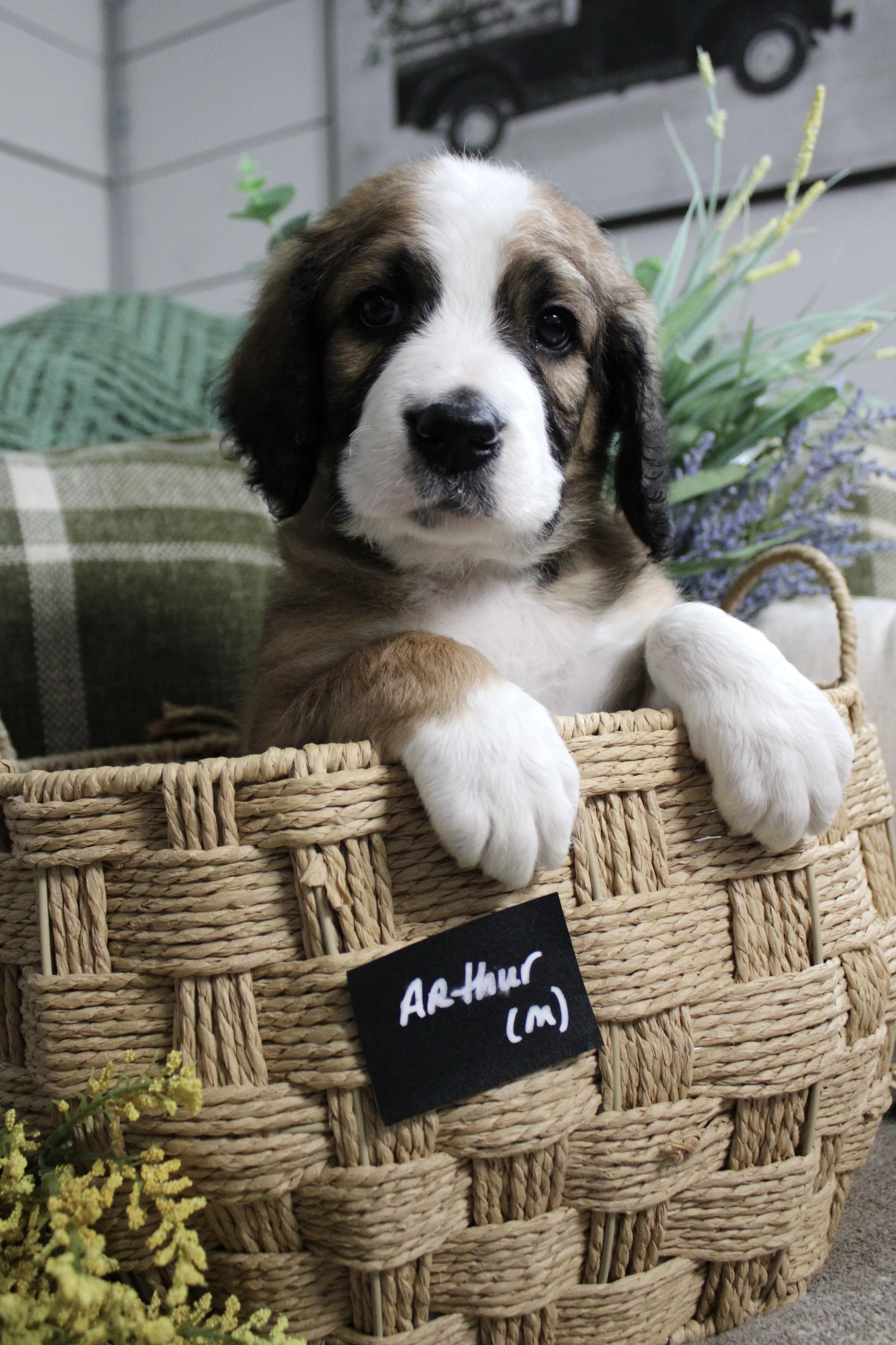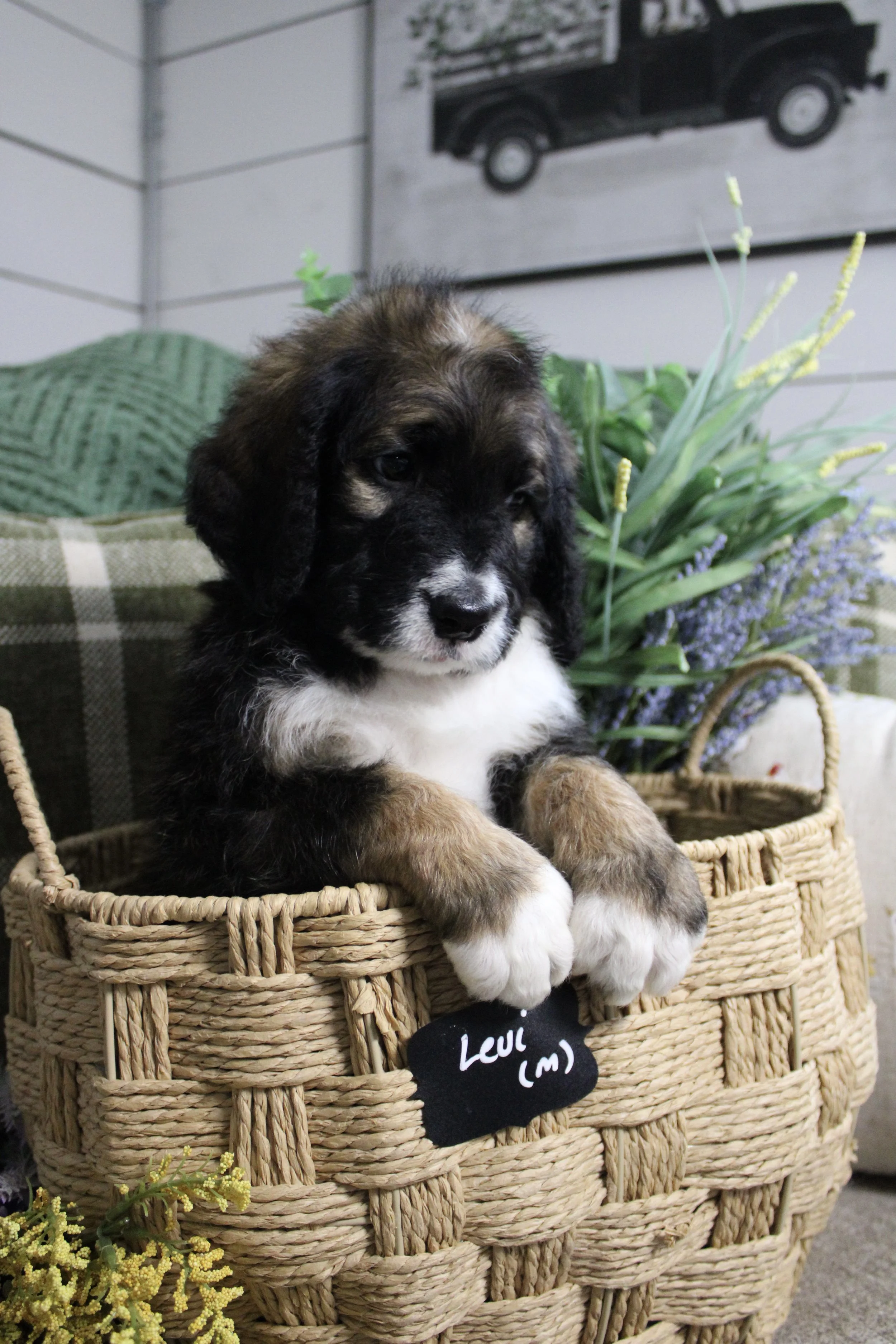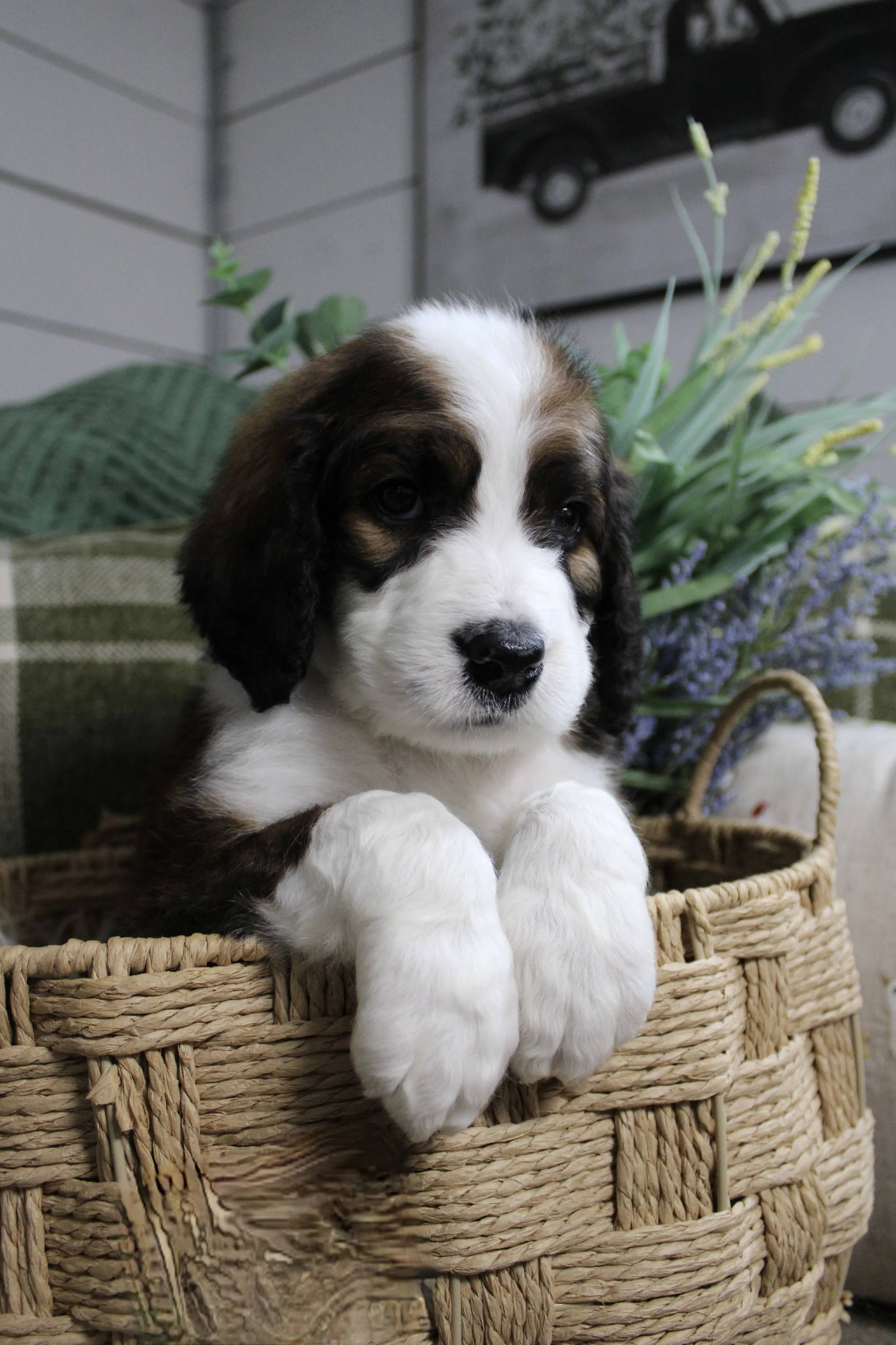 Paisley & Ewan (Australian Saint Bernedoodles) 75-85lbs sable tri puppies go home 5/23/26. more pictures on the Facebook page