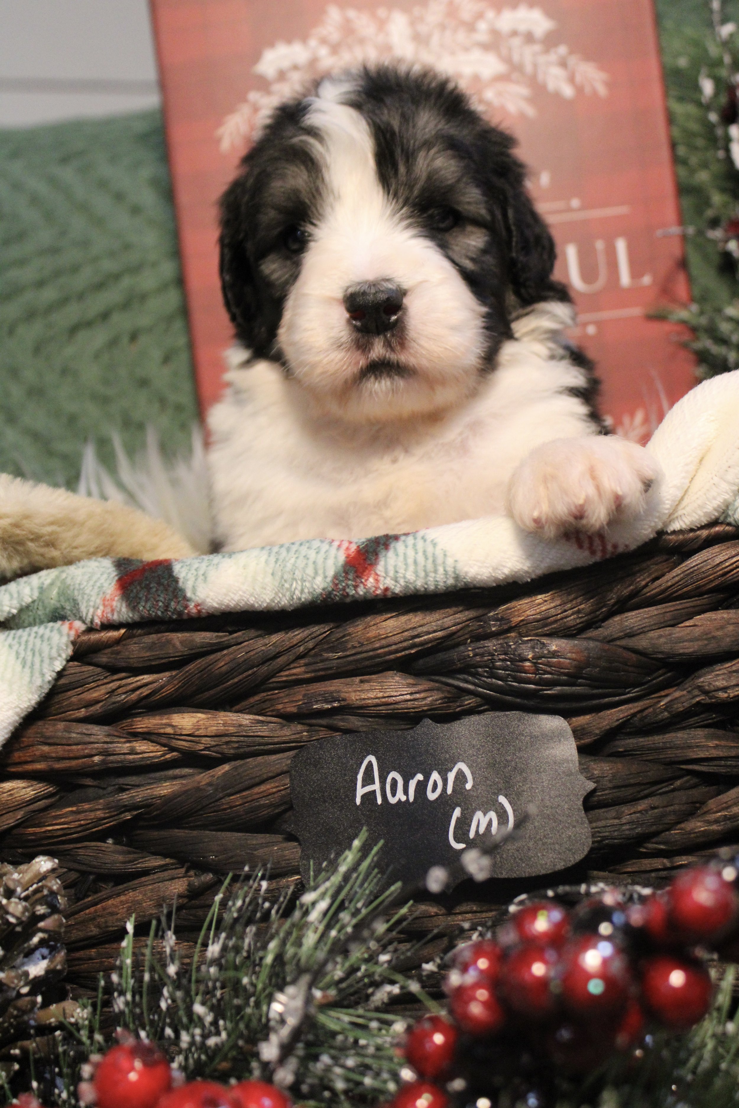 AVAILABLE Pippi’s Australian Saint Bernedoodles AARON (M) estimated size at maturity 55-65lbs go home date 12/18/25. Free delivery if within 4 hours of Keene NH.