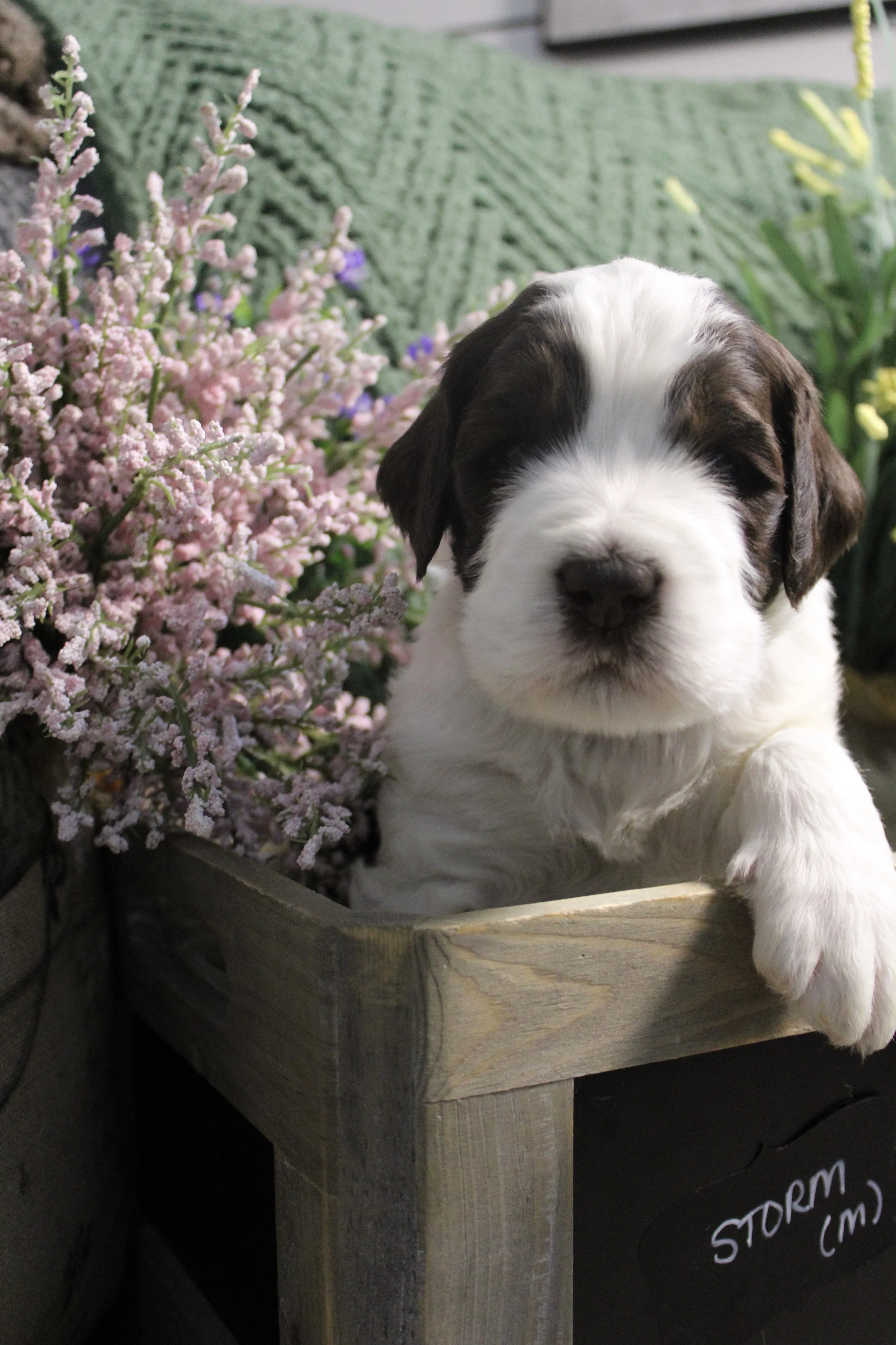 AVAILABLE River’s Australian Saint Bernedoodle STORM (M) estimated size at maturity 55-65lbs go home date 2/19/26. Free delivery if within 4 hours of Keene NH