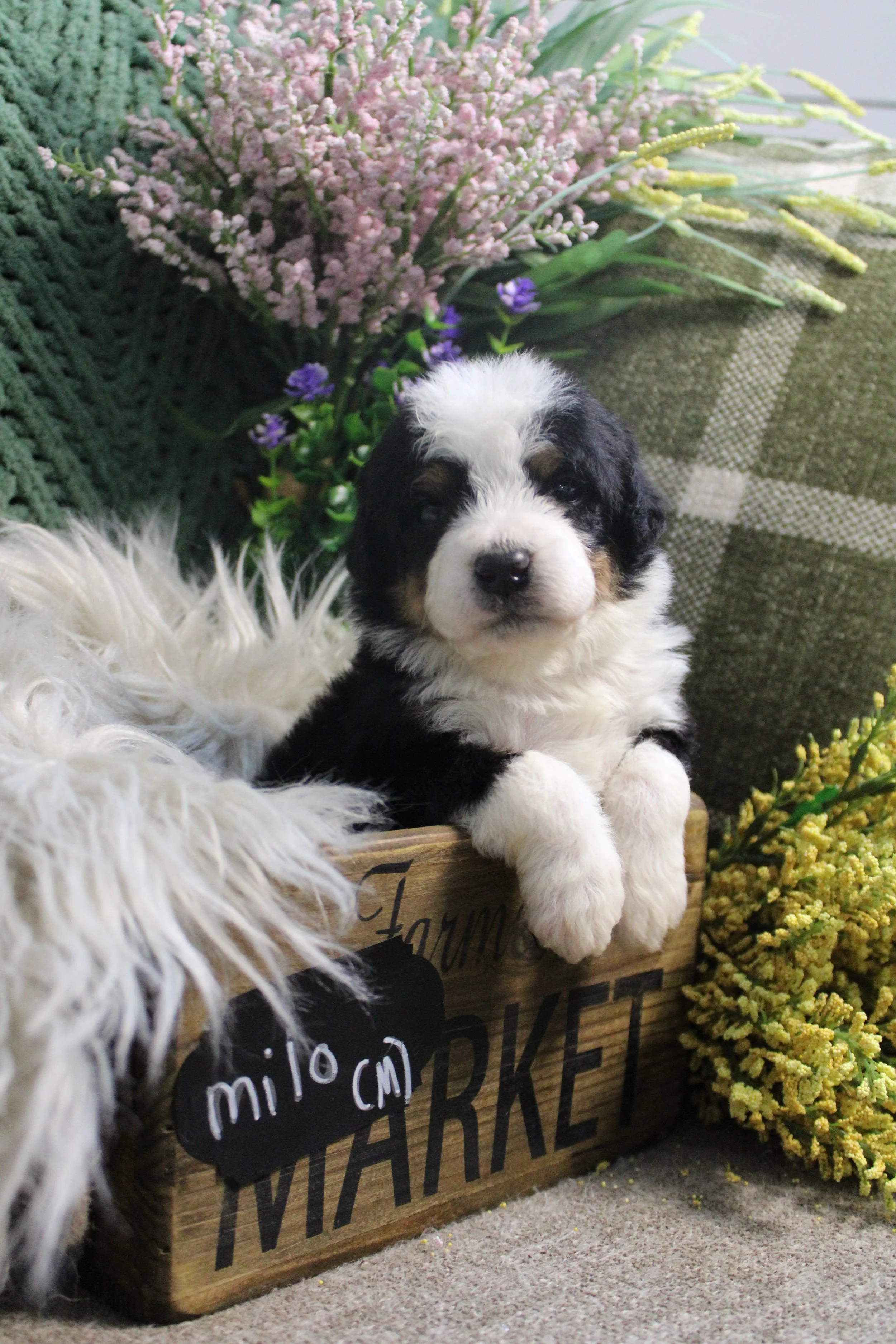 You can see past puppies the parents and a write up of our dogs under the tab “OUR DOGS”. Please see the FACEBOOK page for the most up to date pictures, videos and past puppy pictures. Facebook link can be found at the bottom of the page. Our mini’s can be found on our sister site High Country Labradoodles where you can see more photos of the mini bernedoodles available. https://highcountrylabradoodles.com/puppies