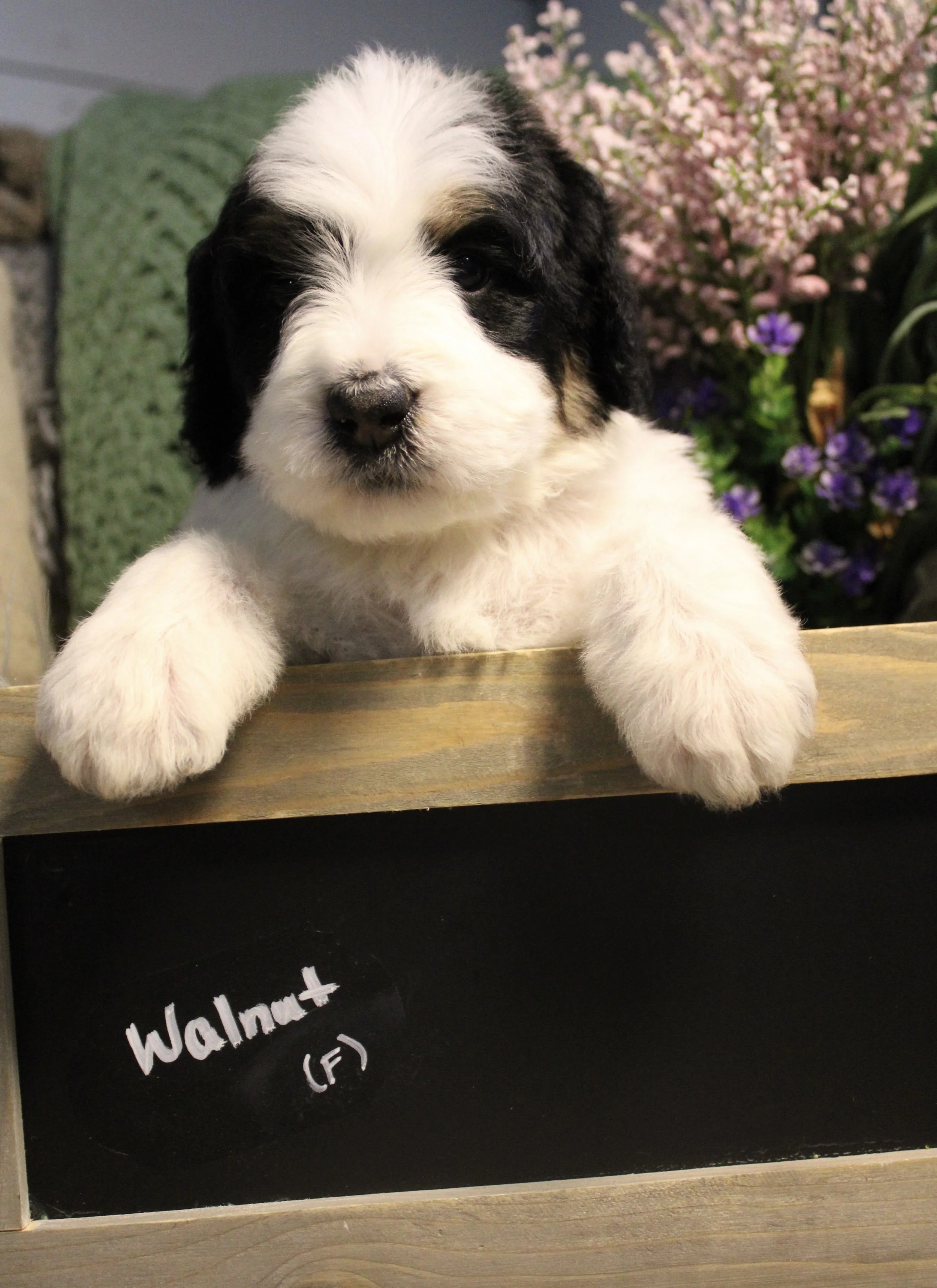 AVAILABLE Olive’s Australian Saint Bernedoodle WALNUT (F) estimated size at maturity 55-65lbs go home date 2/8/26. Free delivery if within 4 hours of Keene NH