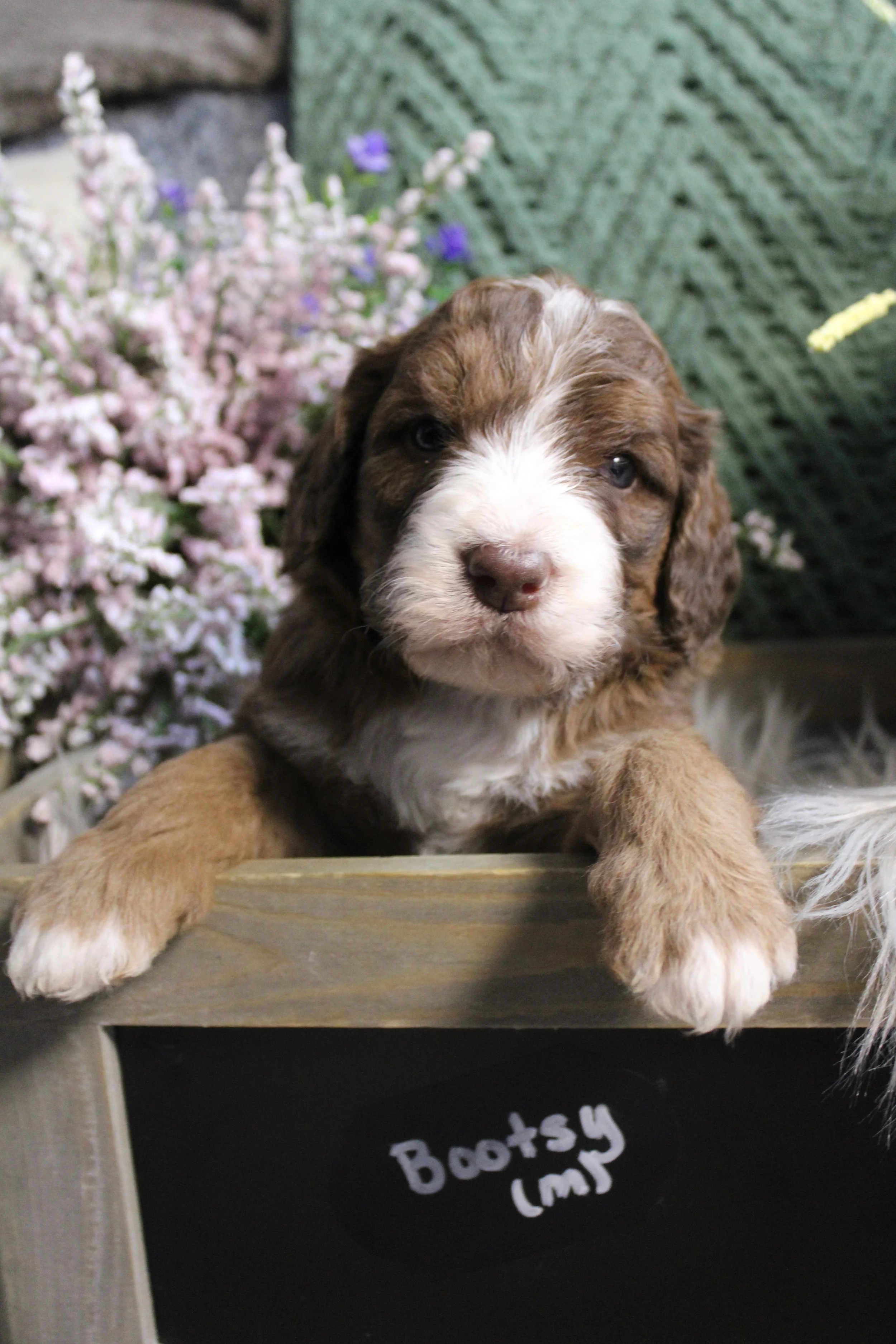 AVAILABLE Aurora’s Australian Saint Bernedoodle BOOTSY (M) estimated size at maturity 50-60lbs go home date 2/19/26. Free delivery if within 4 hours of Keene NH
