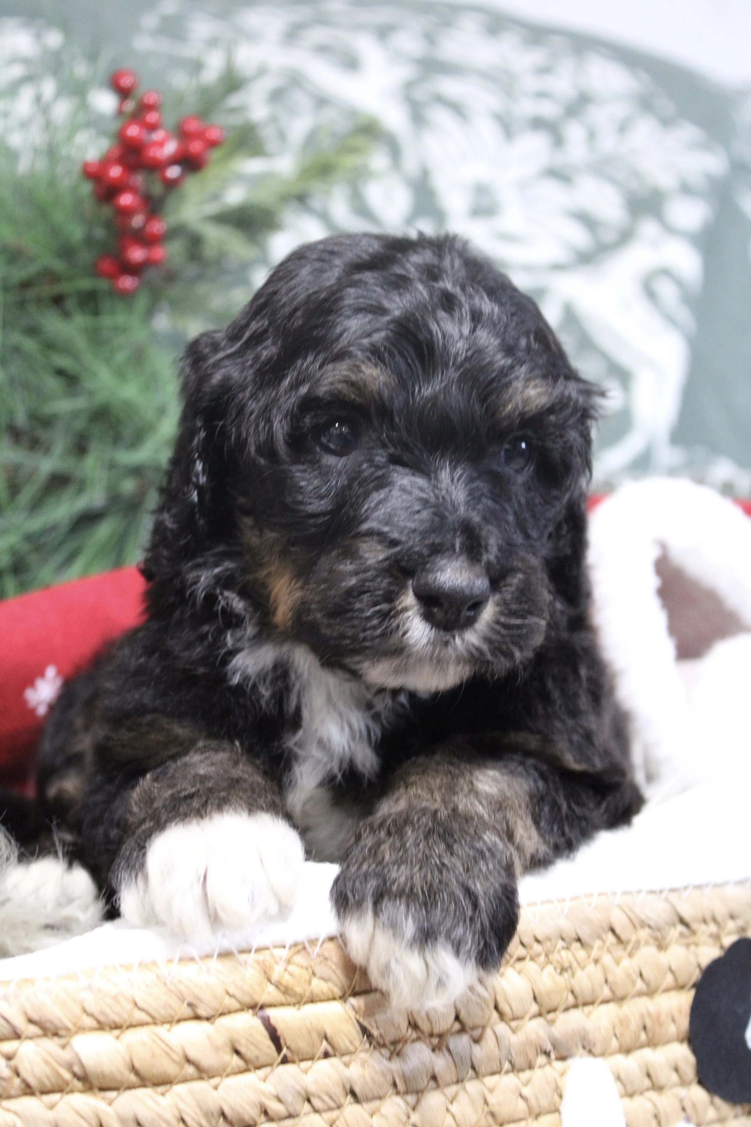 SOLD Jasmine’s Australian Bernedoodles TEDDY (M) estimated size at maturity 25-30lbs go home date 12/21/25. Free delivery if within 4 hours of Keene NH.