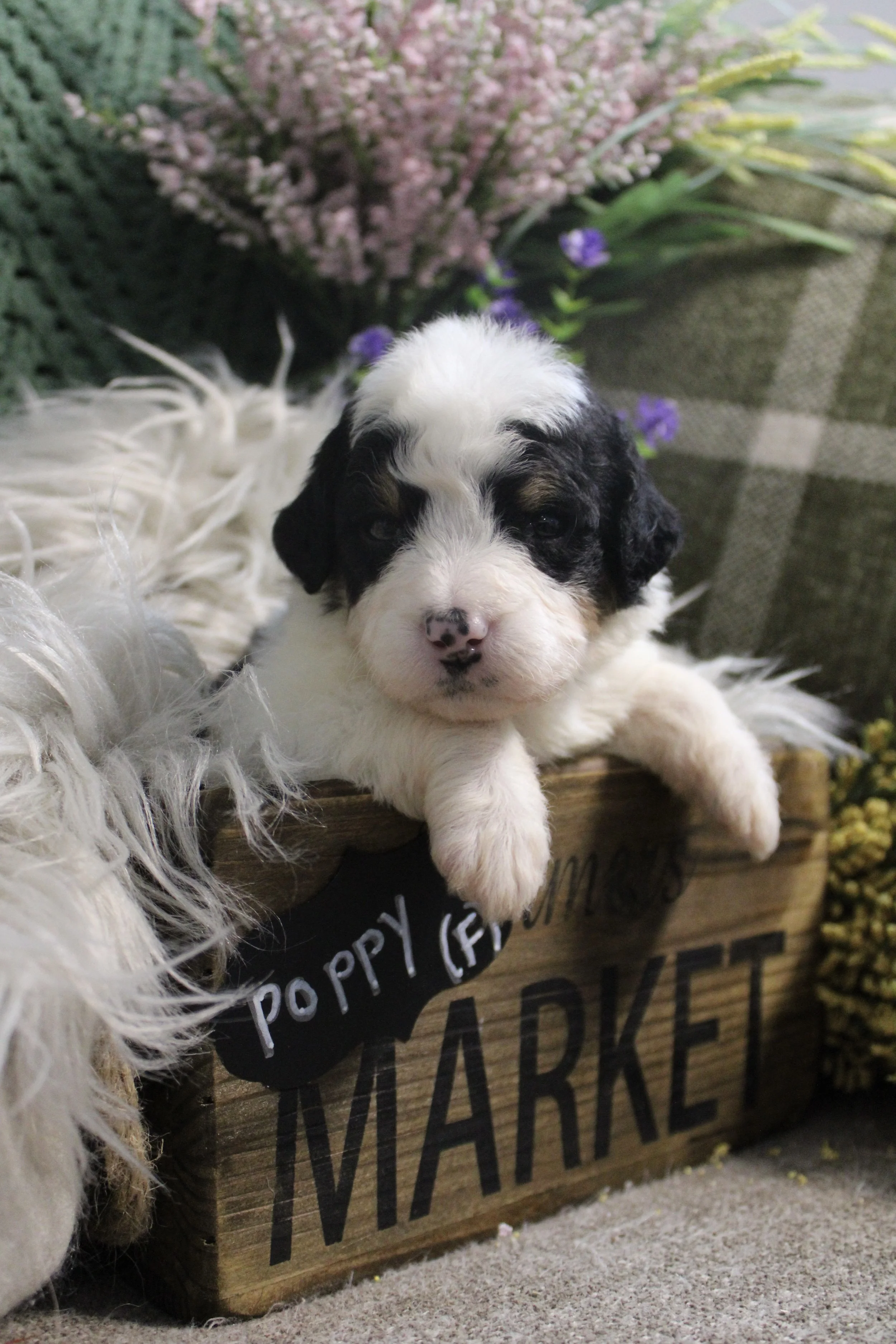 AVAILABLE Carly’s Australian Bernedoodles POPPY (F) estimated size at maturity 30-40lbs go home date 2/13/26. Free delivery if within 4 hours of Keene NH