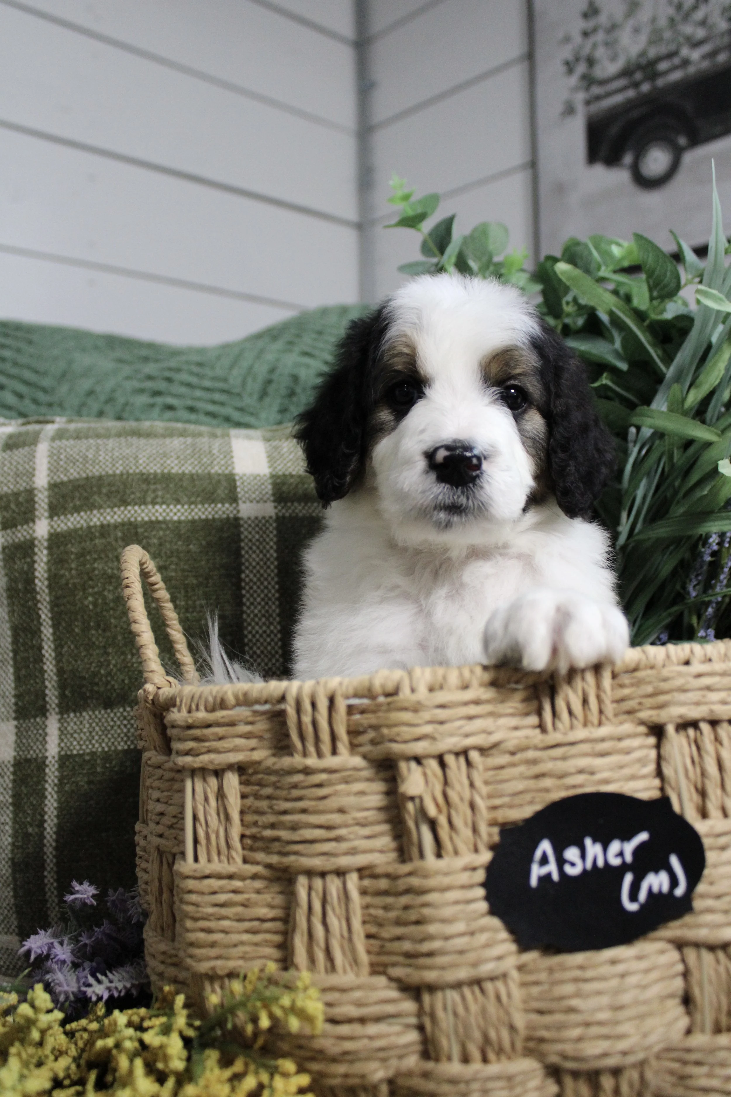 AVAILABLE Maisy’s Australian Bernedoodle ASHER (M) estimated size at maturity 45-55lbs go home date 5/3/26. Free delivery if within 4 hours of Keene NH